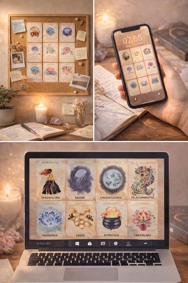 Cada área recebe uma mensagem que ajuda você a compreender o momento, ajustar intenções e plantar sementes conscientes.